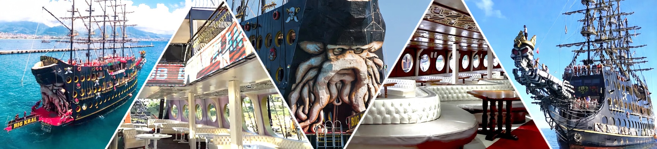 Instant confirmation: Your reservation is confirmed immediately after booking. Selected days only: This tour runs on Tuesday, Friday and Sunday only. Check availability carefully before booking. The largest pirate boat in the Mediterranean: Big Kral is the undisputed biggest and most imposing pirate boat of the Mediterranean, offering 5-star hotel comfort on board. The quality of the living spaces and the richness of the buffet set it apart from other tour boats. Alanya bazaar stop: This tour includes 1.5 hours of free time in Alanya’s historic port and bazaar — guests can shop, explore or simply relax on board. Lovers’ Cave show: The animator performs a unique live show by climbing through a naturally formed tunnel approximately 40 metres above sea level and jumping into the sea. Phosphorus Cave: Very rich in marine fauna — guests can observe and feed sea creatures during the swimming break. Arrives at Türkler port (not Alanya harbour) — transfer back to your hotel is included and fully organised. Snorkelling: Snorkelling gear is not provided — bring your own for the Cleopatra Beach stop. Surprise gifts: Prizes are awarded to participants who win group games and animation contests on board. |