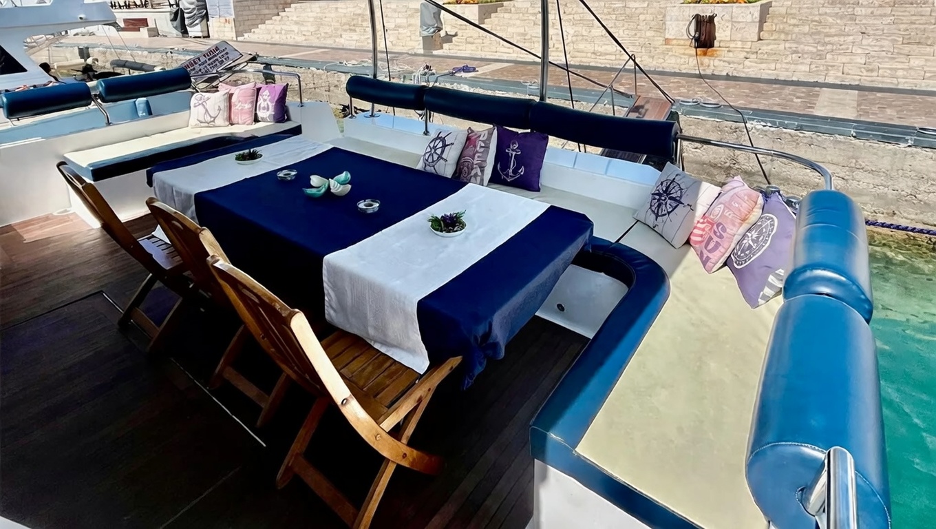 Water sports: Various sea activities available at the water-sports station along the route. Contact us for the price list. Flexible transfer: Earlier pickup or later drop-off available upon request. Birthday cake: Available upon request — prices match the bakery’s rates. Overnight cruise: Khaleesi Deluxe is fully equipped for overnight stays, with generator and water tank on board. Contact us for overnight tour options and pricing. |