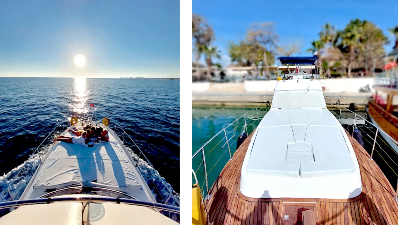 Water sports: Various sea activities available at the water-sports station along the route. Contact us for the price list. Flexible transfer: Earlier pickup or later drop-off available upon request. Birthday cake: Available upon request — prices match the bakery’s rates. Overnight cruise: Khaleesi Deluxe is fully equipped for overnight stays, with generator and water tank on board. Contact us for overnight tour options and pricing. |